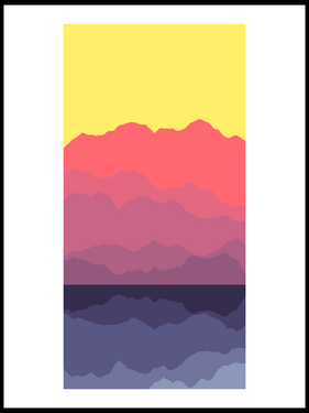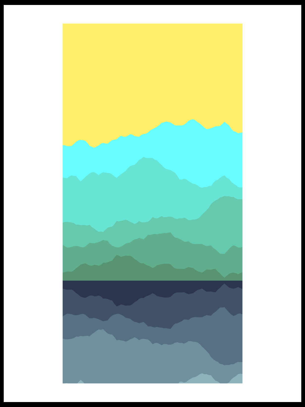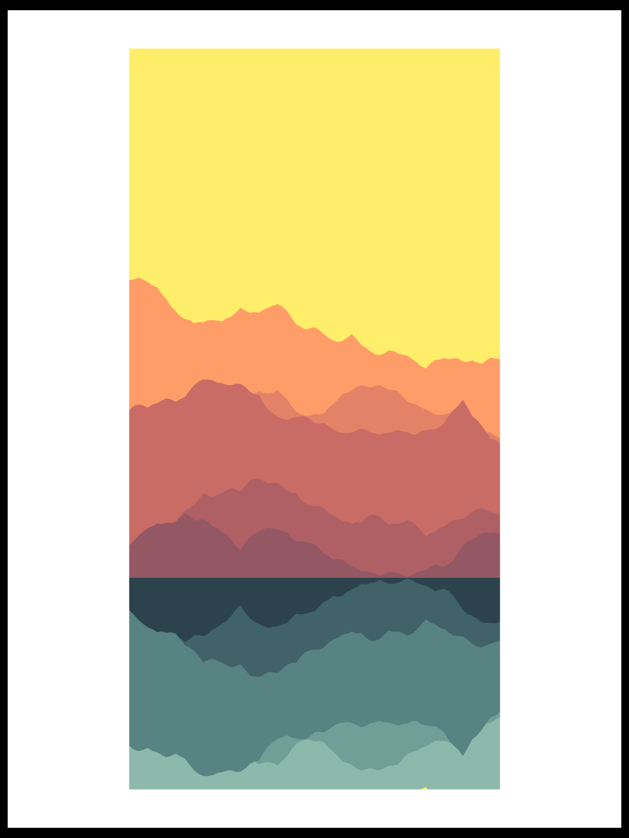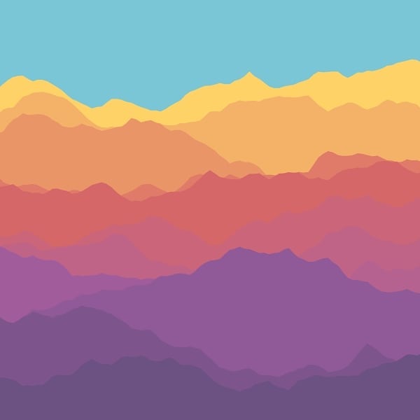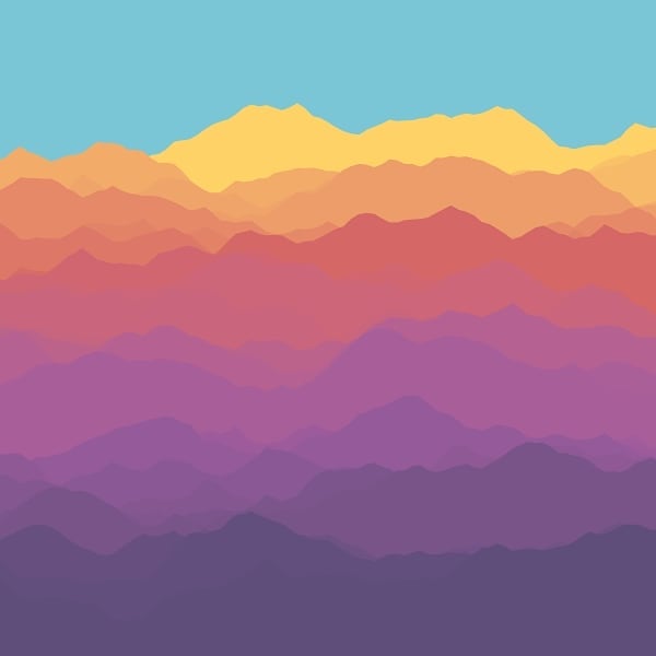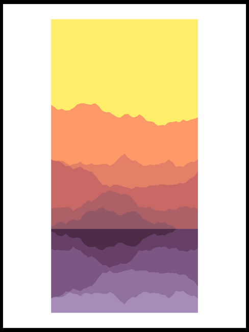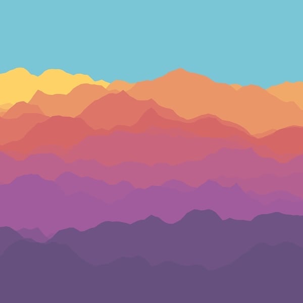 In June 2019, I posted these images to Instagram, the result of playing with some color interpolations and fractal line subdivision to create abstracts of mountains at sunset. I’ve lost the originals, so now all I have are these blurry JPGs.